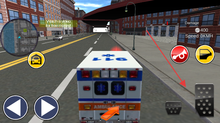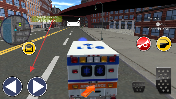 2、左右箭头控方向,右侧踏板控车速,驾驶救护车在城市街道移动(如接救援任务)。