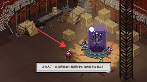 3、操控队伍靠近紫色装置,触发对话(“美国英雄电视剧设备复制品”),推进任务。