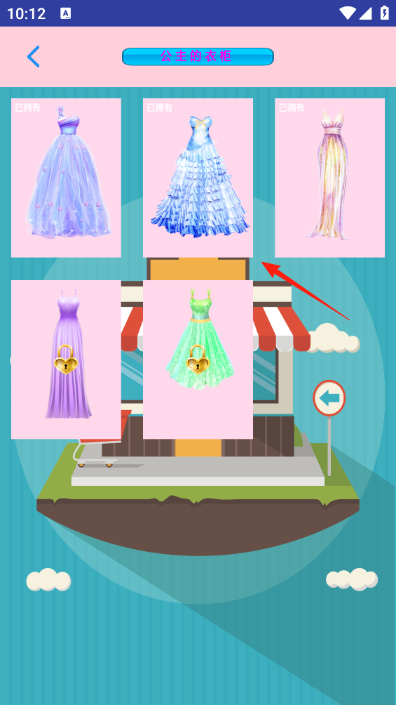 1、进入“公主的衣柜”界面,可查看已拥有和未解锁的礼服,点击心仪礼服(如已拥有的),能为公主更换穿搭,借衣柜展示机制,体验服装收集与搭配玩法,感受装扮公主的趣味。