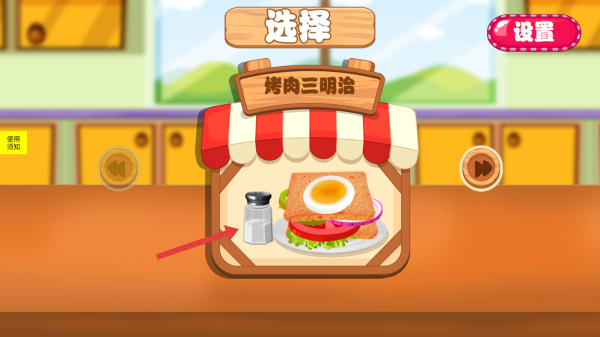 1、开局选择:点“开始游戏”,选“烤肉三明治”等食谱,进入烹饪流程。