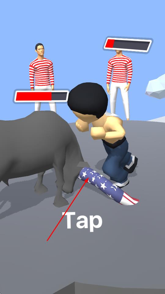 3、“Boss挑战”,跑酷至终点,挑战Boss:功夫小人,点击屏幕让公牛冲撞,消耗其血量,击败Boss。