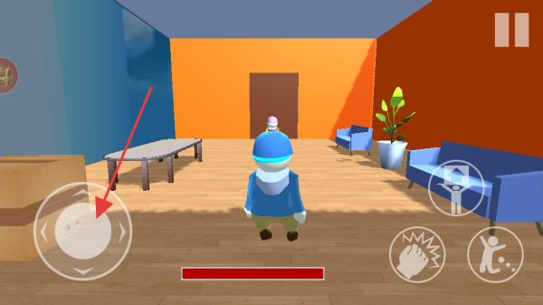 2、进入游戏后,通过左下角虚拟摇杆控制角色移动,熟悉游戏操作,探索室内环境,如第二张图所示。