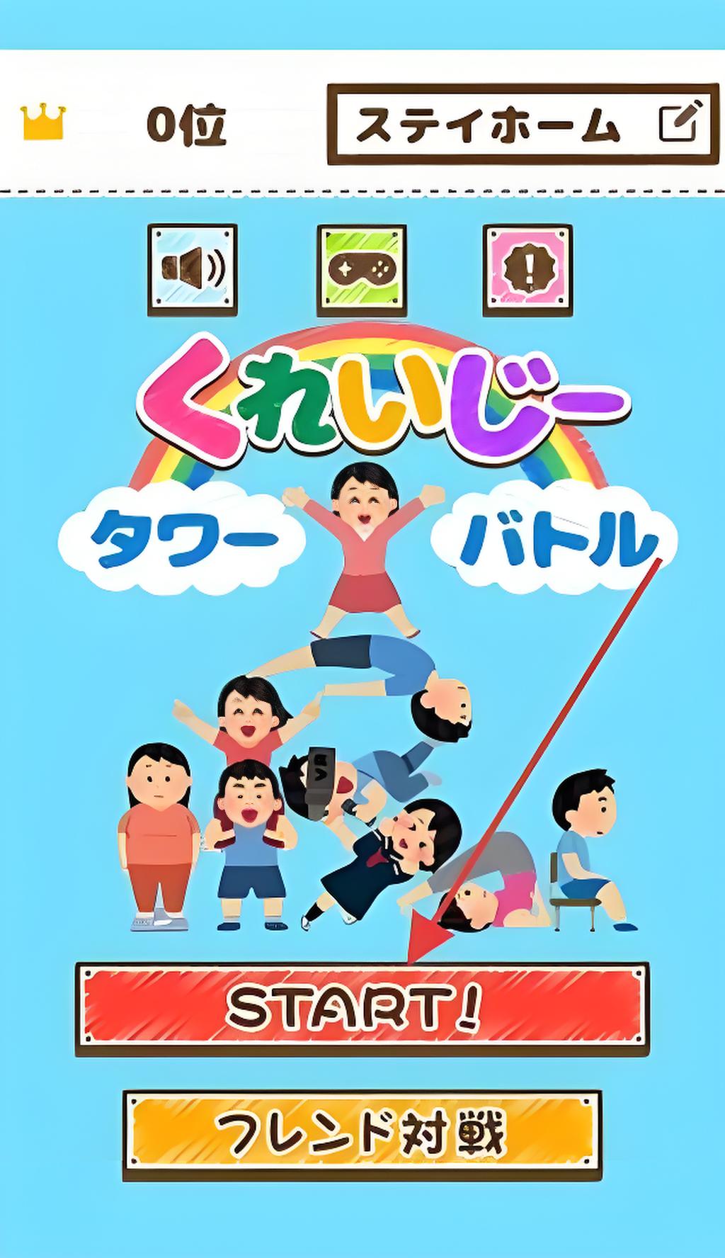 1、点击【START!】,进入游戏,参与【くれいじータワーバトル】叠人塔挑战。