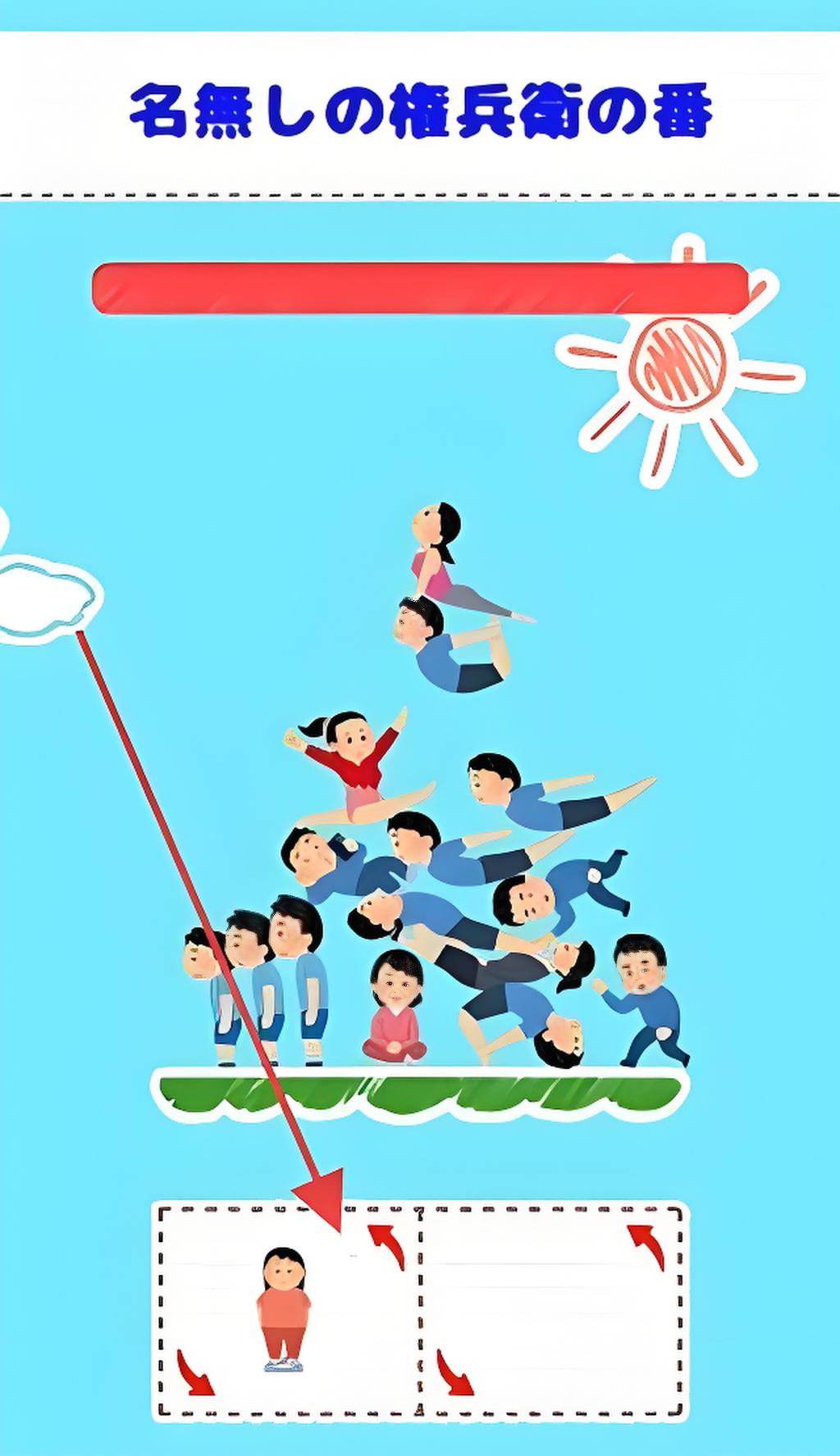 2、在叠塔阶段,根据提示,选择对应角色(如穿红衣的角色),放置到指定位置,搭建稳定人塔。