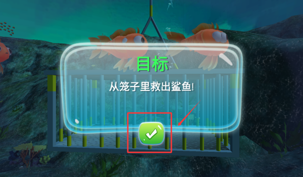 3、看清楚目标提示需要从笼子里救出鲨鱼。