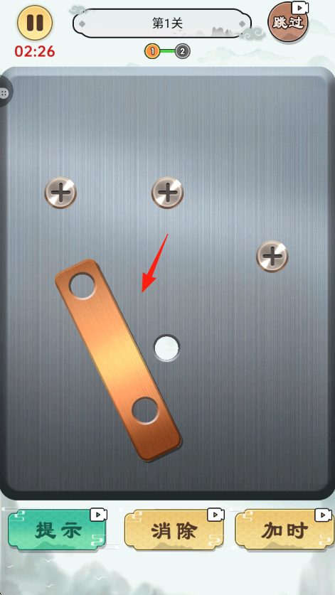 3、继续操作剩余螺丝与部件,让金属板(箭头指向)归位,完成关卡挑战,解锁下一关。