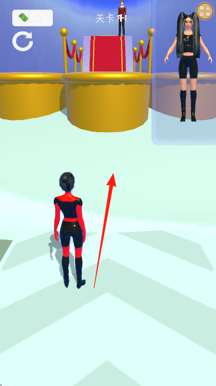 3、到达关卡终点,若角色造型与右侧目标(箭头指向)一致,完成挑战,进入下一关。