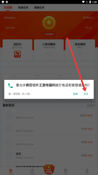 1、APP请求“拨打电话和管理通话”权限时,按需选择【允许】或【拒绝】,若需通话功能联动,点击允许。