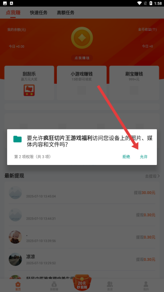 2、处理完通话权限,APP申请“访问照片、媒体和文件”权限,根据隐私需求,选【允许】开启存储访问。