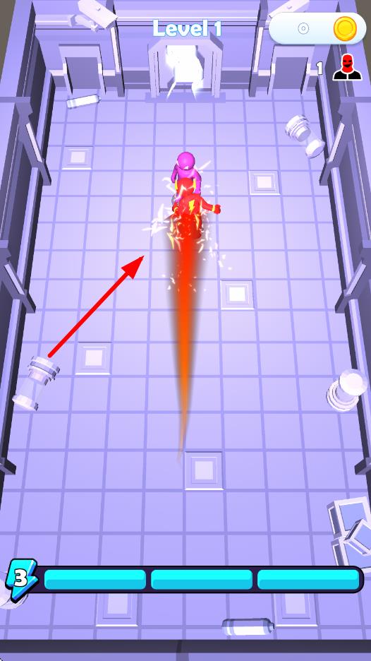 1、进入简约风格的城市战场,化身为闪电侠,感受超快速度的操控手感,熟悉快速移动、躲避障碍的基础操作,准备开启英雄使命。