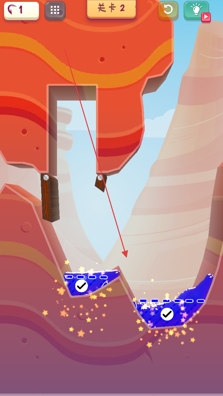 3、随着关卡推进,场景布局会变得更加复杂,木板的数量和位置、水源的分布等都会增加解谜的难度成功完成关卡任务后。