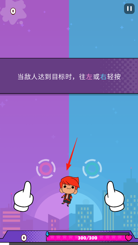 3、遇到玩法指引:“当敌人达到目标时,往左或右轻按”,操控角色,在敌人靠近时,按左右方向让角色闪避,借闪避机制,躲避敌人攻击,感受操作与策略结合的挑战。