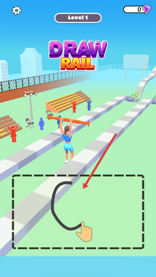 1、画线辅助:在Level1,按指引在虚线框画轨道(如黑色曲线),助力角色前行。