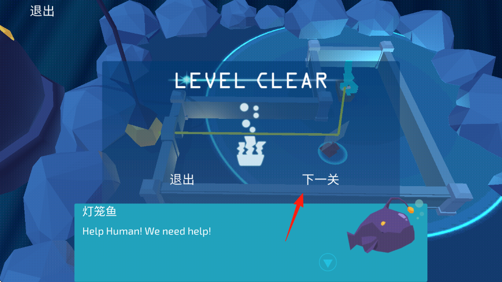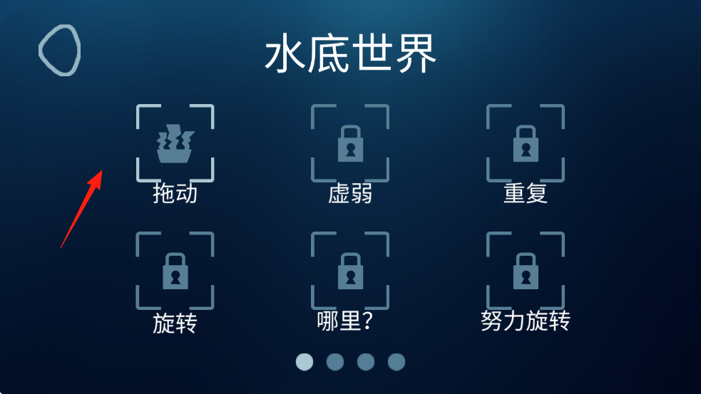 1、在“水底世界”界面,选“拖动”关卡(箭头指向),进入光线解谜场景。