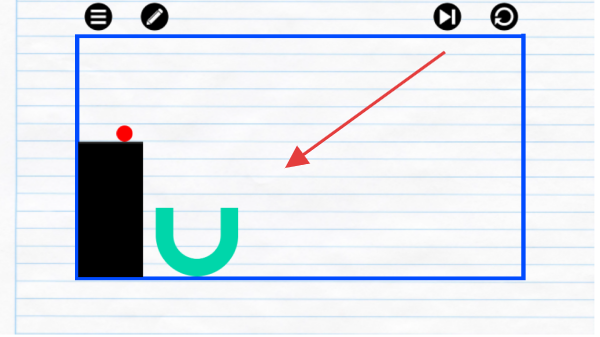 3、进入游戏关卡后,观察场景布局,如红色小球和绿色U型槽位置,按照箭头指示方向,通过画线等操作,引导小球进入目标区域,完成关卡任务。