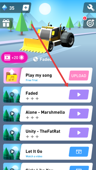 3、在音乐设置页,点击“Faded”右侧播放键,驾驶赛车时同步播放该音乐,也可切换其他曲目或上传自定义歌曲。