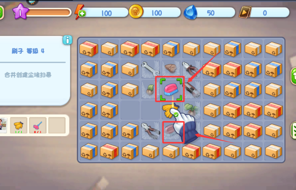 3、需要移动刷子往下面的刷子一起就能解锁清洁工具。