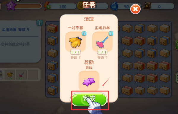 3、完成所需要的清洁工具就按一下完成按钮进行打扫。