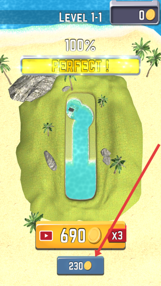 3、在关卡完成(Perfect!100%)后,可以点击【230】领取金币奖励,可用于升级工程车,解锁后续关卡。