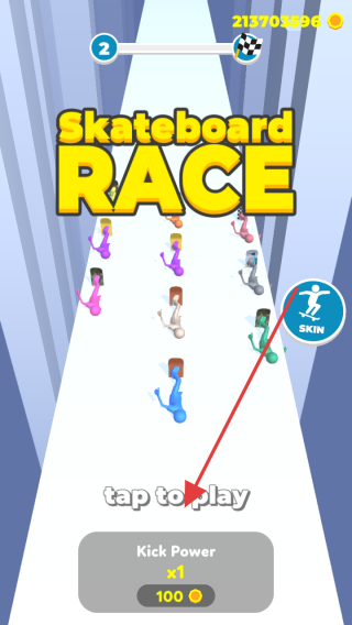 1、点击【tap to play】,进入【Skateboard RACE】,操控滑板角色,开启竞速。