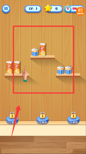 1、核心目标为分类消除,需将相同物品放置指定区域。通过滑动屏幕移动商品,三个以上同类合并即可完成消除。