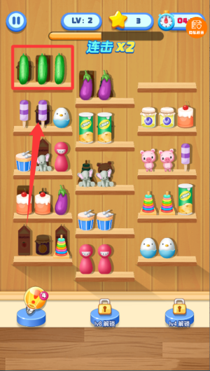 1、开局先观察货架上的物品分布,优先消除数量较多的同类物品,这样能更快完成整理目标并获得分数。