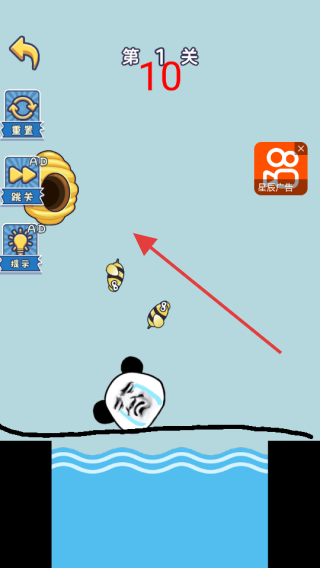 2、进入关卡后,按照箭头提示,绘制线条引导熊猫人移动,利用场景中的道具(如蜜蜂),帮助熊猫人获取蜂巢,注意避开危险。