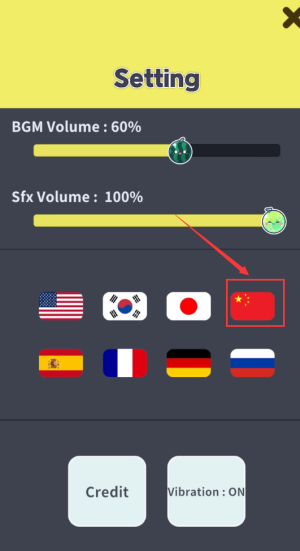 2、选择中国国旗,切换游戏语言为中文版本。