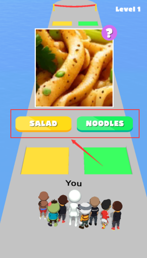 2、选择绿色noodles按钮,完成第一关食物选择。