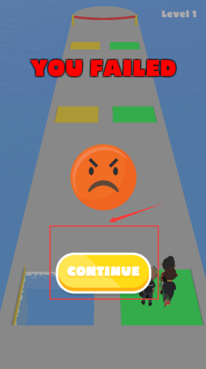 4、点击黄色continue按钮,重新挑战失败关卡。