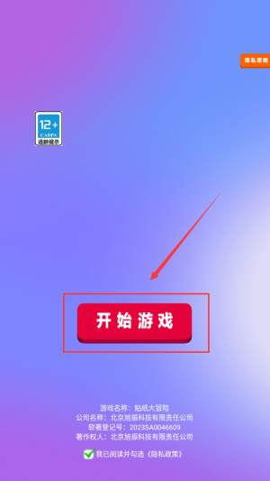 1、点击开始游戏按钮,进入贴纸大冒险游戏界面。