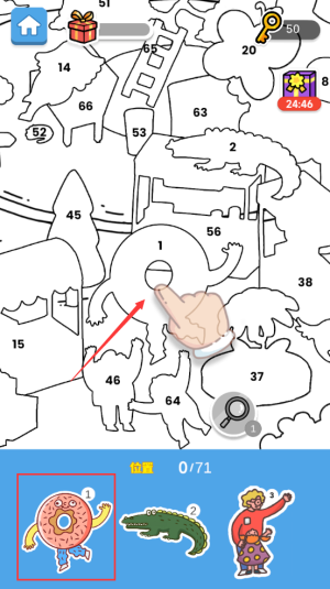 2、进阶关卡引入多层贴纸机制,需要按照特定顺序覆盖才能呈现立体效果。隐藏关卡要求发现场景中的视觉陷阱,比如利用透视错觉完成看似不可能的填色任务。