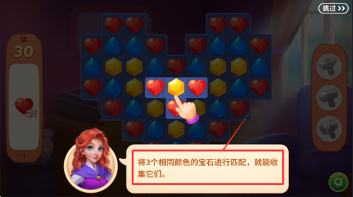 1、玩家通过交换相邻宝石的位置,形成三个或以上相同宝石的连线即可完成消除,每次消除都能获得相应的装修材料和金币奖励。