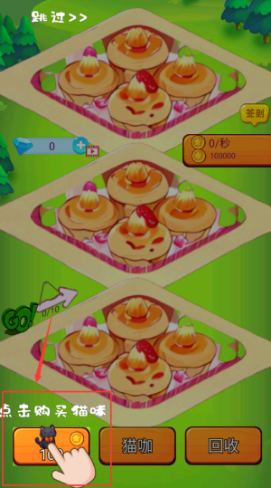 2、点击购买猫咪按钮,花费金币雇佣猫咪助手。