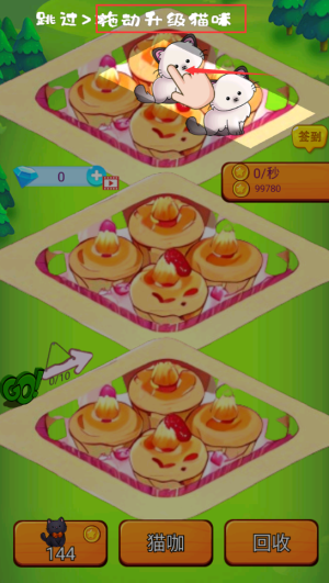 3、拖动猫咪到同一个猫咪自动升级。
