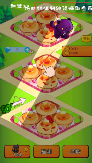 4、将紫色猫咪拖到跑道,开始自动赚取金币。