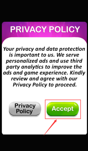 1、点击绿色accept按钮,同意隐私政策继续游戏。