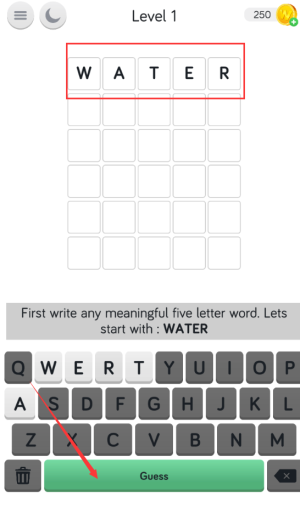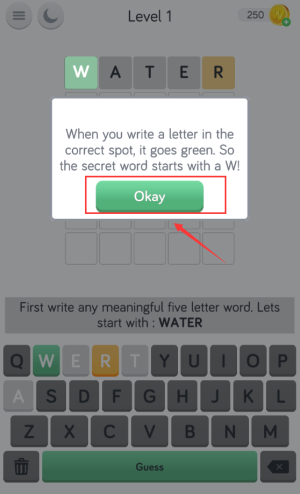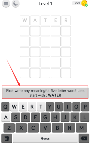 4、阅读绿色字母提示,单词首字母是w继续猜。