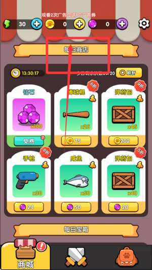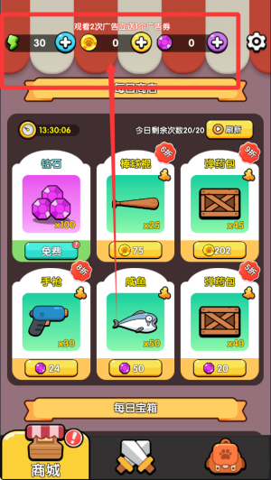 2、还有精彩的商店功能,第一时间记得购买领取,这样会领取大量的资源方便游戏通关。