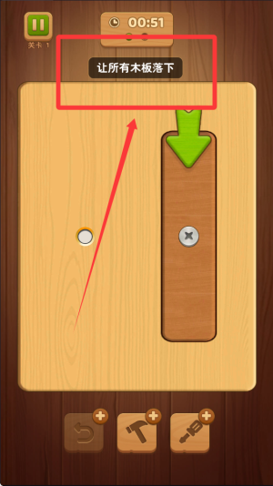 3、游戏中需特别注意木条掉落的物理轨迹,因为下落的木条可能意外遮挡其他螺丝孔,影响后续操作。
