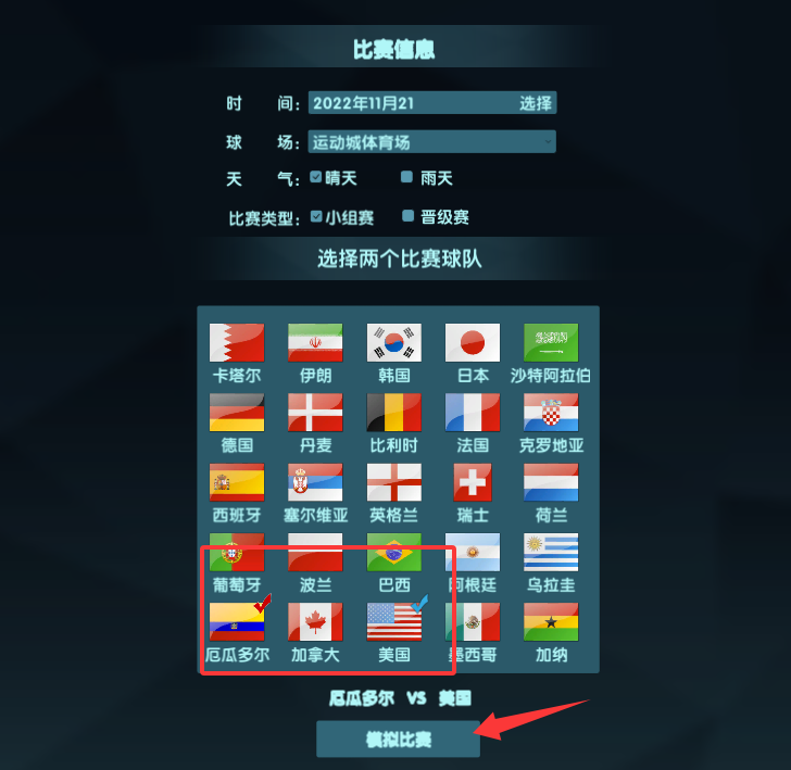 3、喜欢那个点那个,然后就可以模拟比赛。