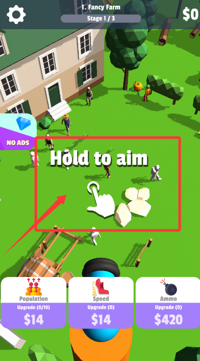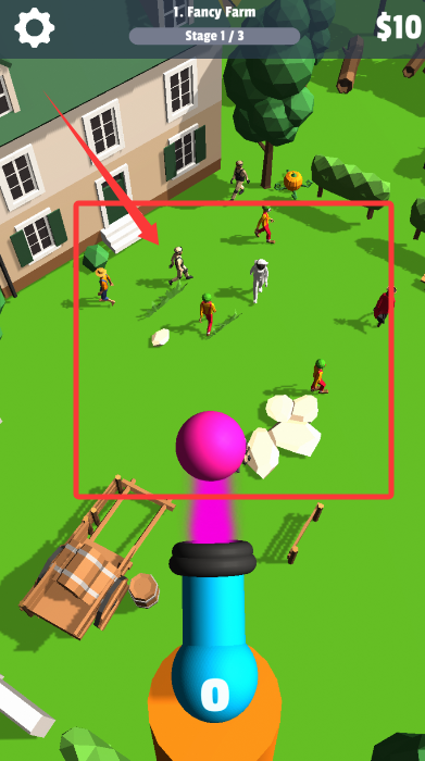 1、启动游戏,根据指示按住瞄准区域,可锁定场景中的目标群体。