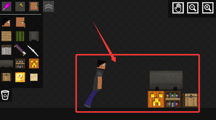 1、基础互动操作简单直接,可自由放置各种道具元素。通过点击、拖拽等手势,就能完成炸药安放、火焰喷射等操作。