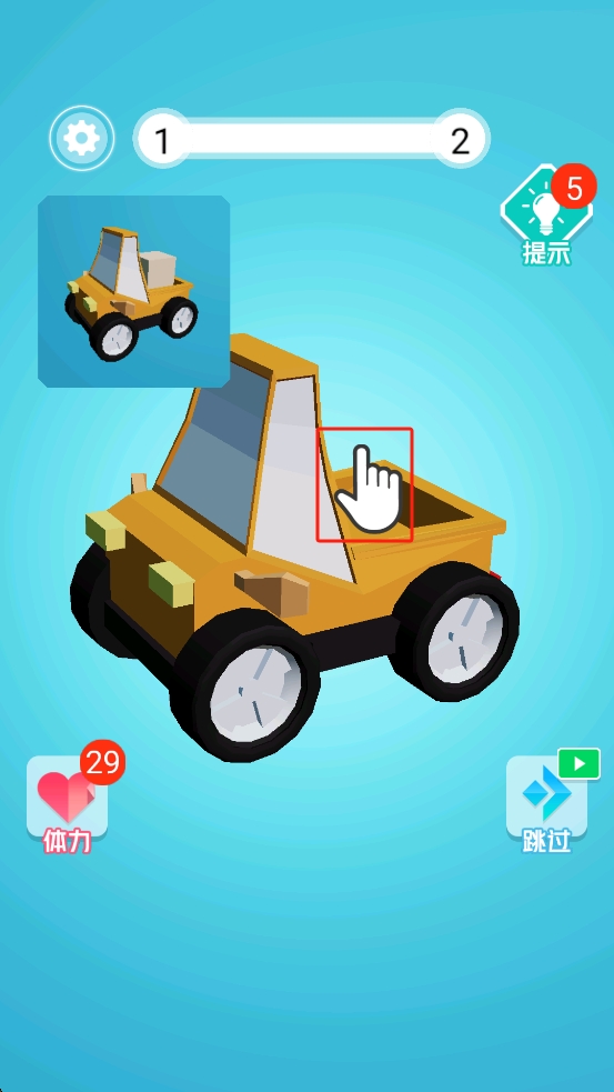 1、根据指引点击汽车对应部位,找出与小图中不一样的地方,即可过关,如果觉得困难,还可点击右侧的提示按钮。