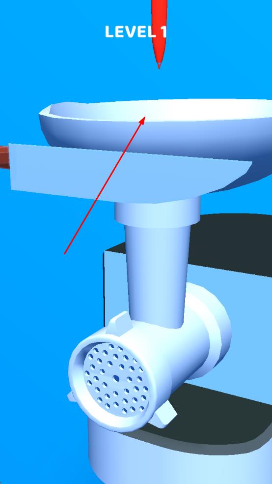 1、将红色物体放入机器上方的碗,启动研磨工具,启动绞肉的流程。