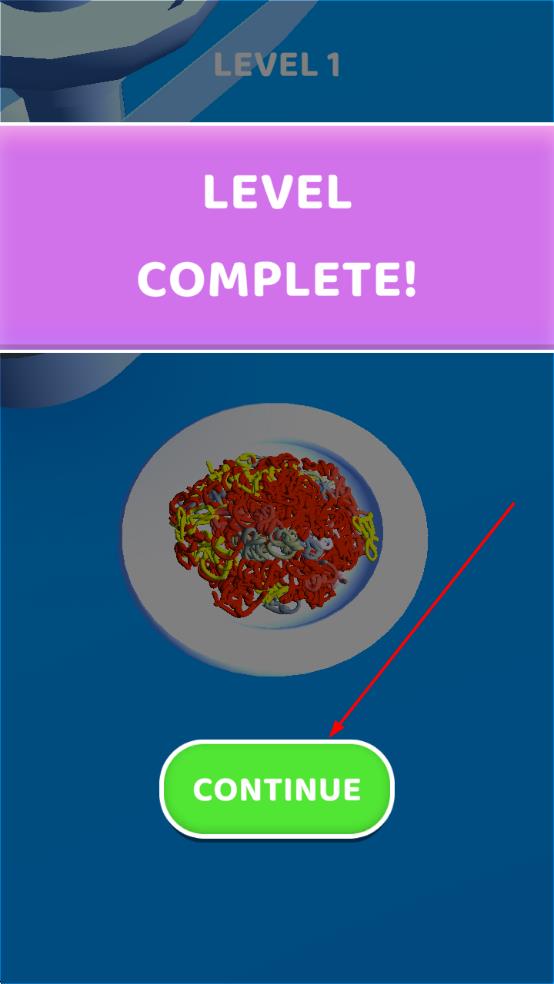 3、关卡完成【LEVEL COMPLETE!】,点击【CONTINUE】,进入下一关,解锁新菜品。