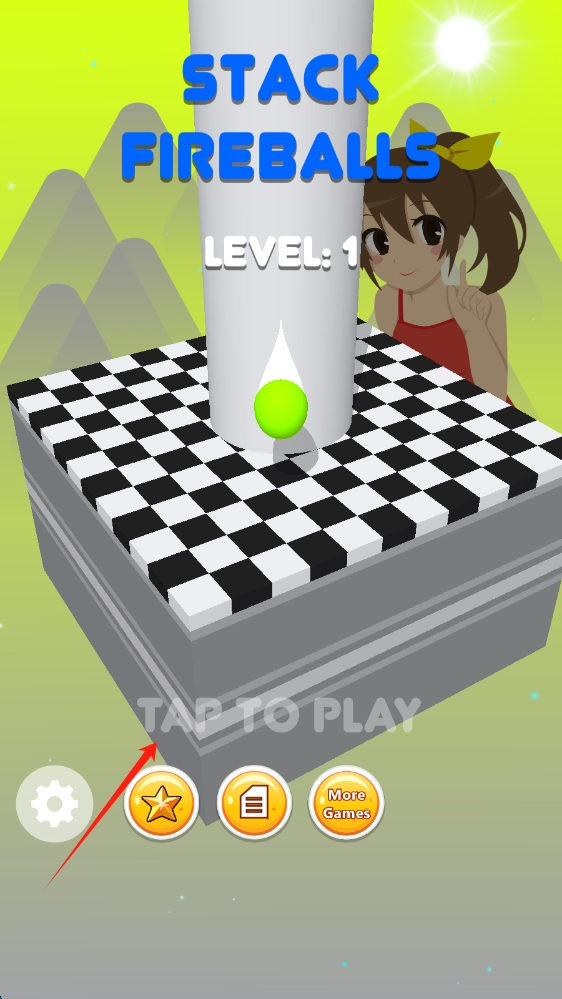 1、游戏第 1 关启动界面,绿色球体准备下落,有 “TAP TO PLAY”(点击开始 )提示,点击开始游戏。