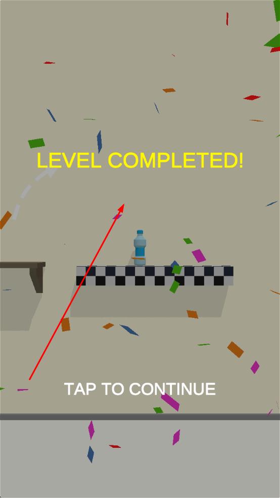 3、瓶子成功越过所有物体并抵达终点平台,当前关卡宣告通关,难度更高的挑战。