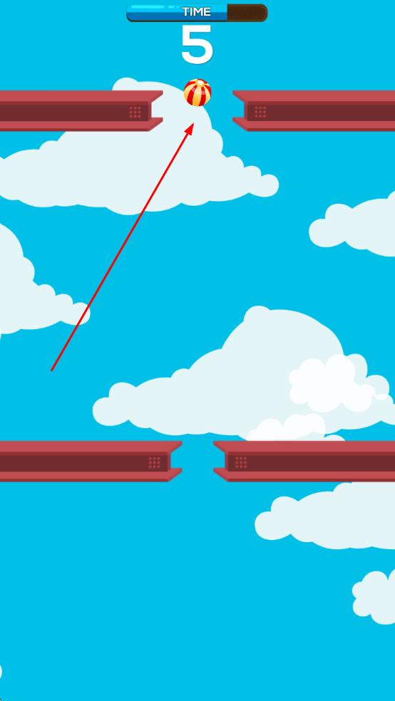 2、点击屏幕,让彩球(箭头指向 )跳跃,跨越平台间隙,注意时间条。
