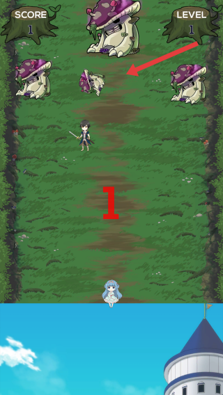 1、开始游戏就进入了战斗阶段,优先攻击箭头指向的小型蘑菇怪,集中输出快速消灭,避免遭怪物合围。